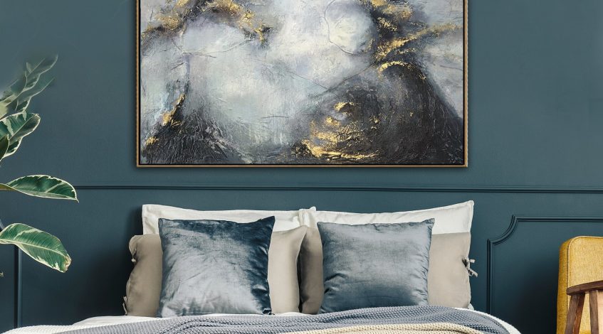 “A bedroom is a place of rest and recuperation, and the art should reflect this. Abstraction in a calm color palette or shades can be a good option. Do you like photography? Look for landscapes in dim colors.”